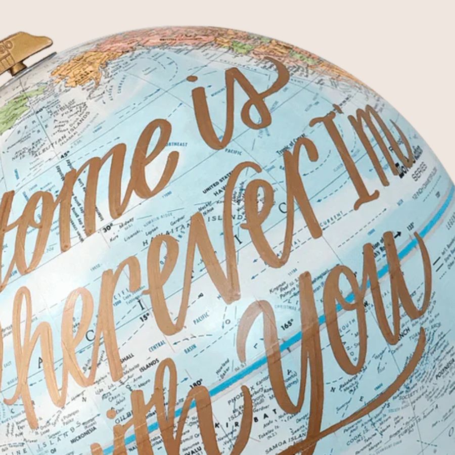 Product: Gold Metallic Hand Lettered Raised Relief Vintage Globe