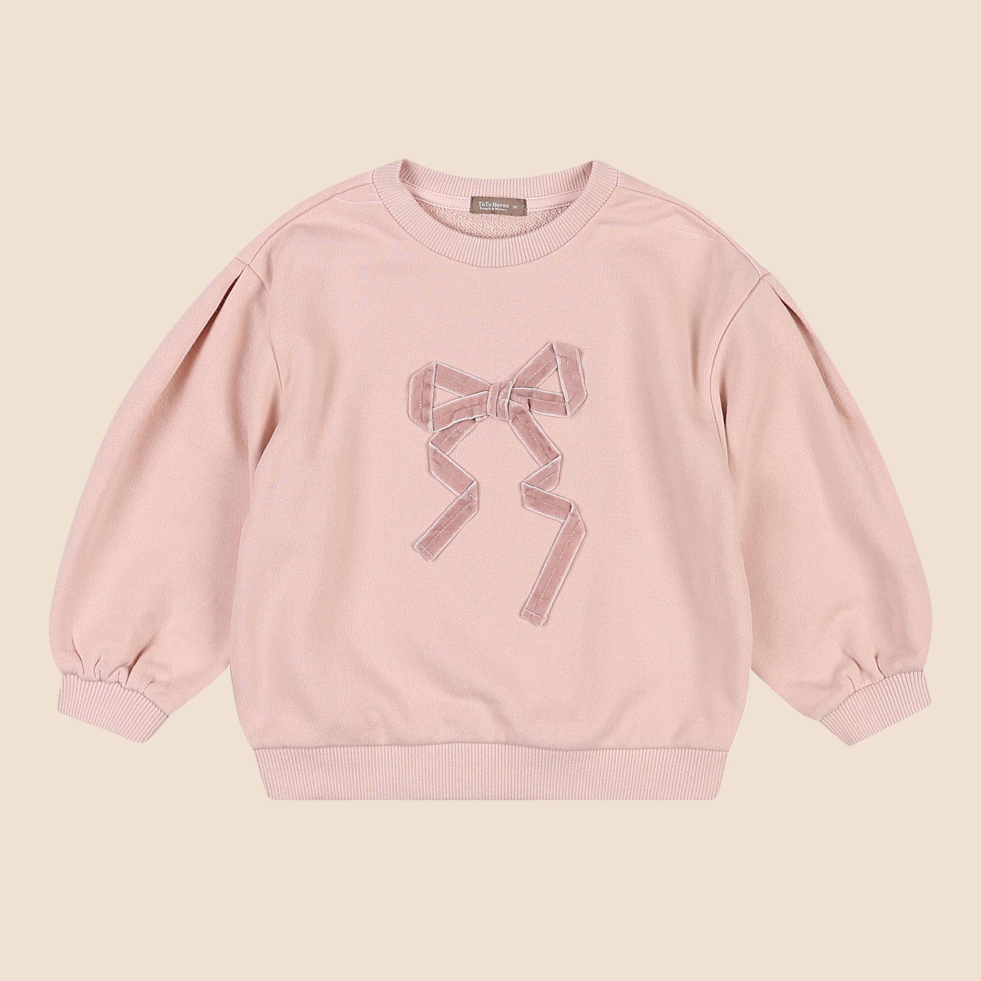 Product: Long sleeve kids’ sweatshirt with velvety bow applique
